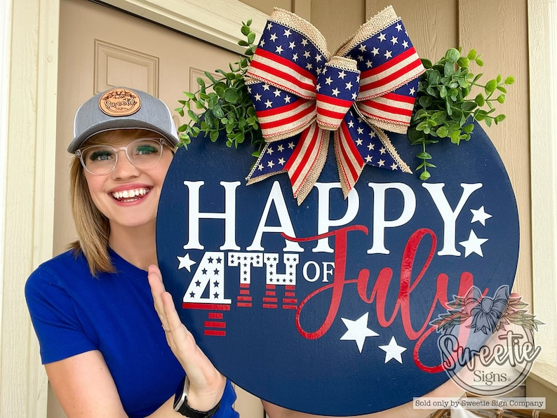 Elevate your Fourth of July celebrations with our meticulously crafted Fourth of July Front Door Decor! Each piece is a labor of love, handcrafted from genuine pine wood rounds (never MDF), ensuring durability and an authentic touch of Americana.