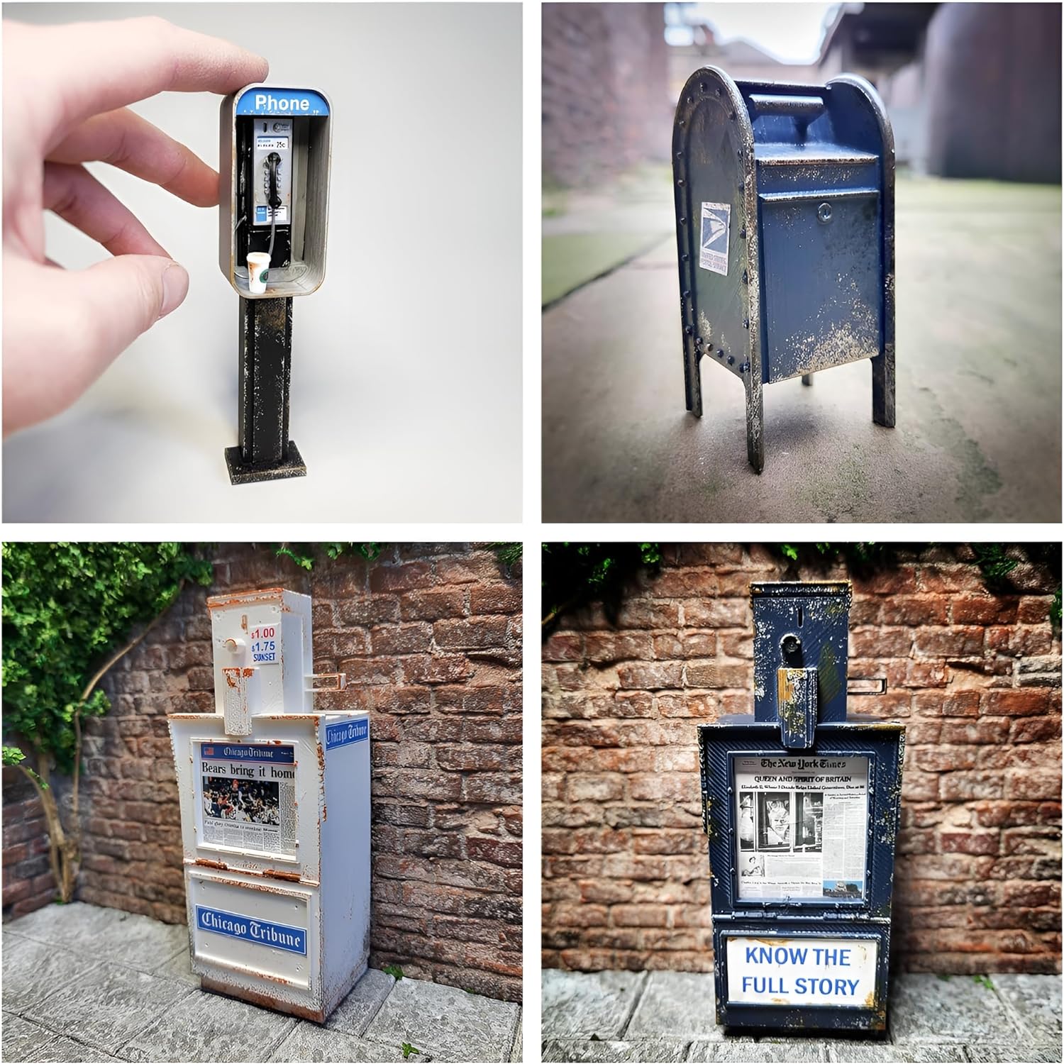 【VERSATILE EXQUISITE DECORATION GADGETS】: The iconic American payphone, booth, and mailbox replicates will be the perfect ornament pieces for your miniature landscape, dollhouse, display cabinet, or mini toy collections, as well as good scenery settings in your photography, always capable of bringing a touch of nostalgia and bygone stories to any space. The vintage mini gadgets will definitely remind you of those familiar but fading street memories at your younger age.