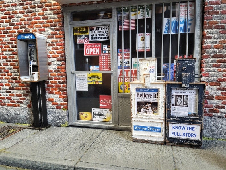 【ORIGINAL RETRO DESIGN】: This vintage dollhouse miniature American payphone, booth, and mailbox set was purposefully designed in a nostalgic style and meticulously crafted in a 1:12 scale. You can clearly see the deliberate details such as traces of use, scoring, peeling paint, color fading, and other skillful treatments to get closer to the authentic retro feel so that each place reveals the heart of design sense and craftsmanship.